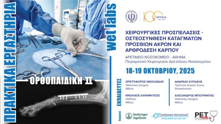 Στόχος του Εργαστηρίου: Ο πρωταρχικός στόχος του εργαστηρίου είναι να ενισχύσει τις χειρουργικές δεξιότητες και γνώσεις των κτηνιάτρων στη διαχείριση καταγμάτων μακρών οστών μικρών ζώων. Μέχρι το πέρας του εργαστηρίου, οι συμμετέχοντες θα είναι εξοπλισμένοι για: Αξιολόγηση και Διάγνωση: Αποτελεσματική διάγνωση καταγμάτων σε ζώα συντροφιάς. Σχεδιασμός θεραπείας: Επιλογή κατάλληλης μεθόδου