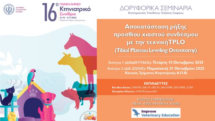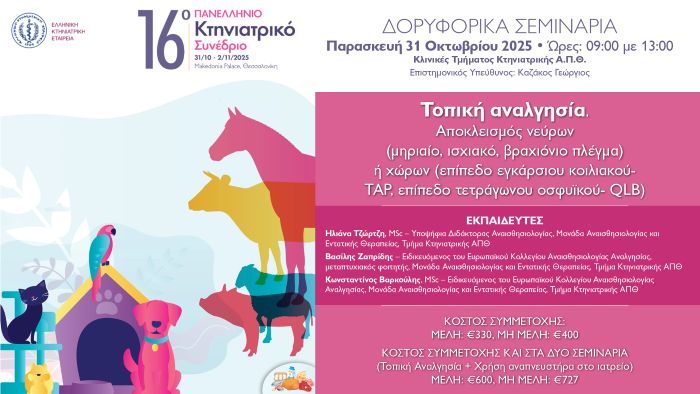 16o Πανελλήνιο Κτηνιατρικό Συνέδριο, 31/10 – 02/11, Makedonia Palace, Θεσσαλονίκη